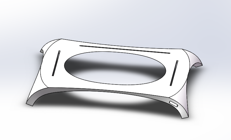 曲面手寫(xiě)板我們最想得到的效果是其空間立體感,即外觀上的視覺(jué)沖擊.初步設(shè)想是一個(gè)弧面(圖示)整體外觀有了便設(shè)計(jì)細(xì)節(jié),首先想到的是筆的放置問(wèn)題,考慮到該手寫(xiě)板的弧形外觀會(huì)造成底部會(huì)有比較大的空間,正好可以放置手寫(xiě)筆同時(shí)不會(huì)影響到外觀.