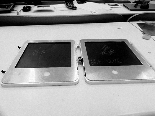 本次項(xiàng)目里面的折疊式手寫(xiě)板主要是由我設(shè)計(jì)并加工的,因此這里主要談?wù)郫B手寫(xiě)板的設(shè)計(jì)亮點(diǎn).