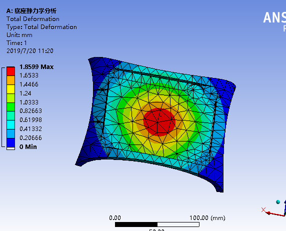 首先我們先對(duì)手寫(xiě)板的基體進(jìn)行受力分析,看看在不加其它物體的情況下,自身是否能承受一定的力而保持變形量很小,試驗(yàn)一下在底座的哪個(gè)地方是變形比較嚴(yán)重的點(diǎn)、應(yīng)力比較大的點(diǎn).
