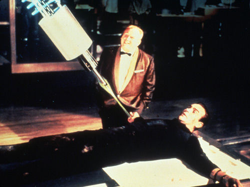 激光武器。軍事機(jī)構(gòu)和小說(shuō)家目睹了射線槍從漫畫(huà)書(shū)里的虛構(gòu)變?yōu)楝F(xiàn)實(shí)的過(guò)程,所以他們?cè)诩す鈩倓偙话l(fā)明時(shí),就看到了激光作為武器的潛力。1964年,007電影《金手指》中大反派“金手指”奧瑞克威脅邦德,要用激光將他鋸成兩半——這在當(dāng)時(shí),還是純粹的幻想。