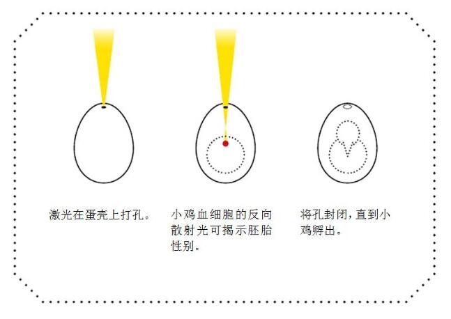 現(xiàn)在農(nóng)民可以保留會(huì)孵出母雞的雞蛋,并在雄性胚胎能感覺到痛苦之前就處理掉會(huì)孵出公雞的雞蛋.