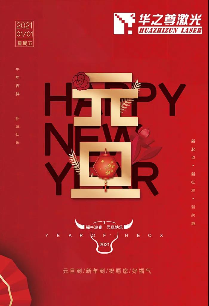 歲末年初、辭舊迎新!伴隨著大家的辛勤與汗水,極不平凡的2020即將結(jié)束了,充滿希望的2021馬上來臨。在此,華之尊激光恭祝大家元旦快樂!愿你福到、運到、開心到!!!
