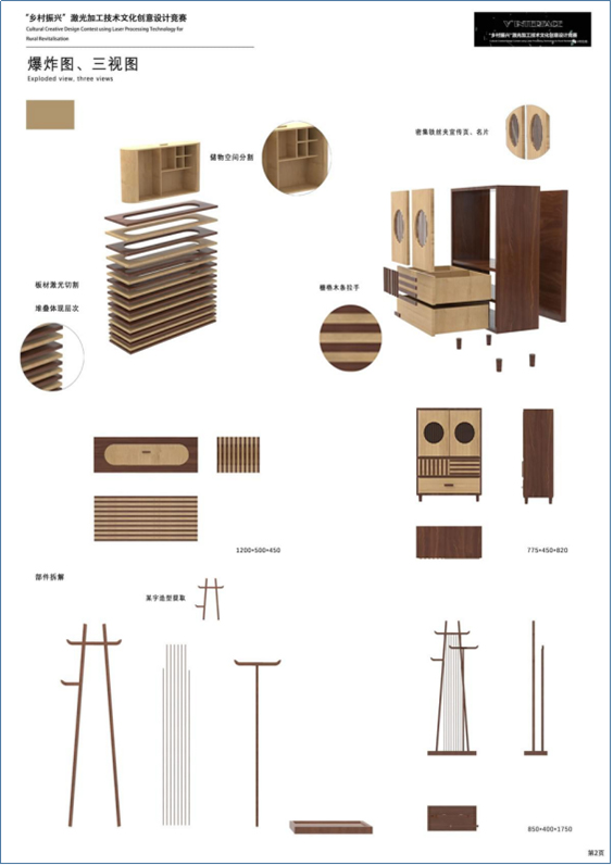 AT HOME系列家具針對巴某村地理位置偏僻、缺乏產(chǎn)業(yè)支持,但木材資源豐富的特點(diǎn),整合了木材資源,結(jié)合了當(dāng)?shù)氐拿袼拊O(shè)計(jì)與特色的鄉(xiāng)村旅游產(chǎn)業(yè),設(shè)計(jì)一套適合巴某村鄉(xiāng)村旅游特色的板式民宿家具。板材的加工結(jié)合了激光加工技術(shù)、巴某村的建筑特色和“巴某”二字的簡化,運(yùn)用并體現(xiàn)于家具當(dāng)中。以此增加民宿入住率,帶動周邊群眾發(fā)展民宿旅游實(shí)現(xiàn)增收。